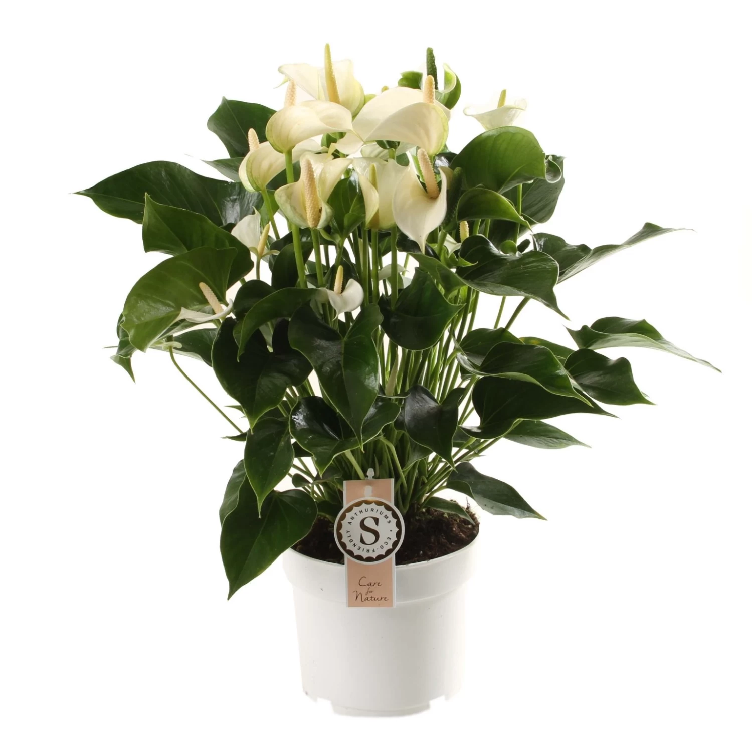 De Anthurium White Champion staat ook wel bekend onder de naam Flamingoplant. De plant is te herkennen aan zijn mooie gekleurde schutbladeren. Van oorsprong komt de Anthurium uit de tropische regenwouden van Midden- en Zuid-Amerika.
