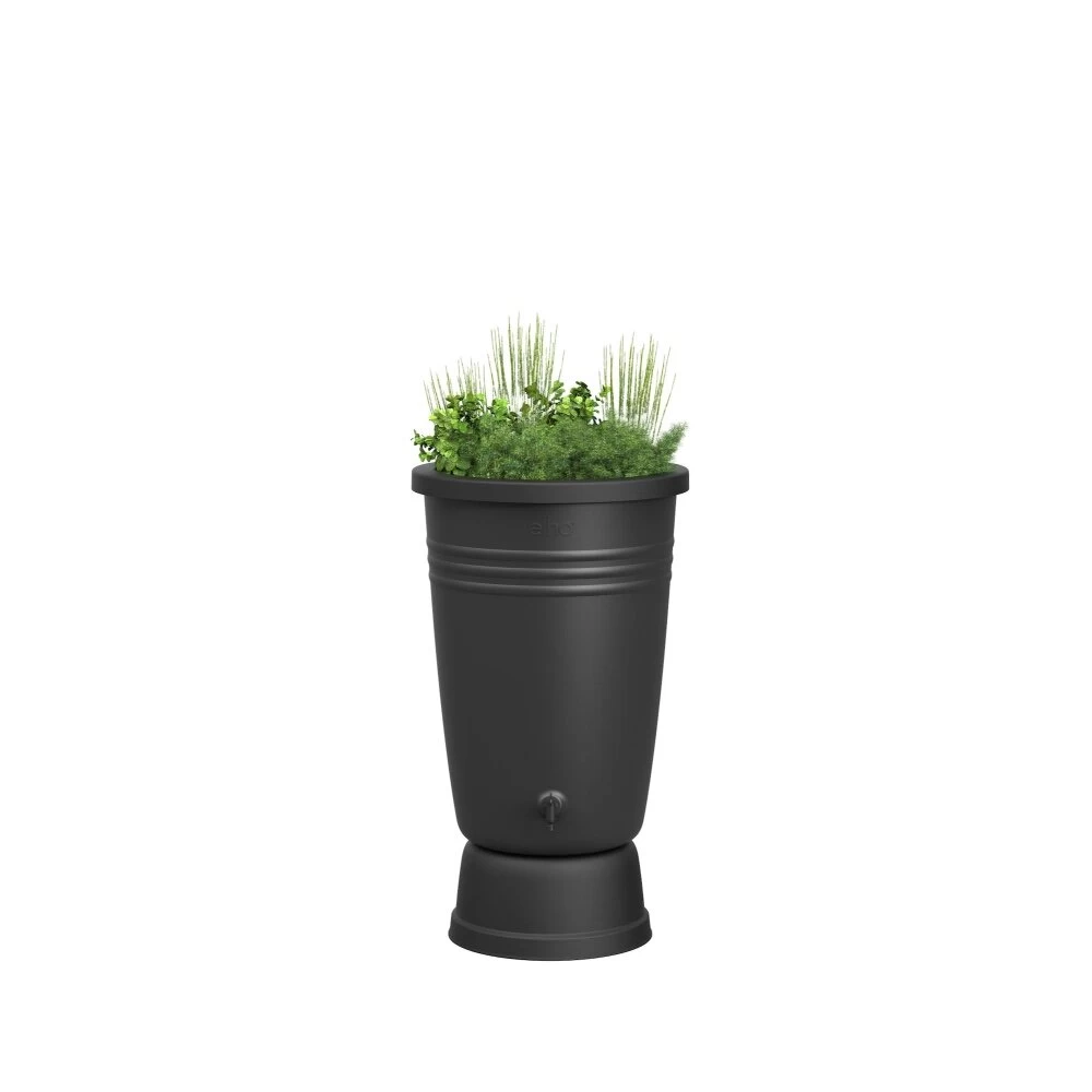 Ben jij zuinig op water? Met onze nieuwe green basics regenton plus vang je eenvoudig het regenwater op en is het klaar om hergebruikt te worden. De regenton heeft een inhoud van 110 liter. Deze elho regenton wordt geleverd met een kraantje, stevige voet en een plantenbak bovenop om je tuin te vergroenen. Gemaakt van 100% gerecycled materiaal en met windenergie. De regenton is ook 100% recyclebaar.Goed voor de planet en portomonee Geef je bloemen en planten een water uit de regenton. Hierdoor verbruik je minder kraanwater dat uit de grond gepompt wordt, ofwel beter voor de bodem en de natuur!Daarnaast is regenwater gratis! Vang regenwater op met de green basics regenton plus en bespaar kosten op je waterrekening. Puur natuurWist je dat bloemen en planten het meest gelukkig zijn met regenwater? In kraanwater zit kalk en andere mineralen die niet in regenwater voorkomen. Een goede reden om lekker veel water op te vangen met de green basics plus regenton.Compleet met voet en kraanDe elho regenton wordt geleverd met een kraantje en een voet. Door deze op de voet te plaatsen, staat de ton stabiel en kun je makkelijk een gieter onder het kraantje plaatsen. Doordat het kraantje laag op de regenton is geplaatst, kun je eenvoudig al het water aftappen. De speciale plantenbak bovenop voor bloemen of planten maakt het helemaal af.
