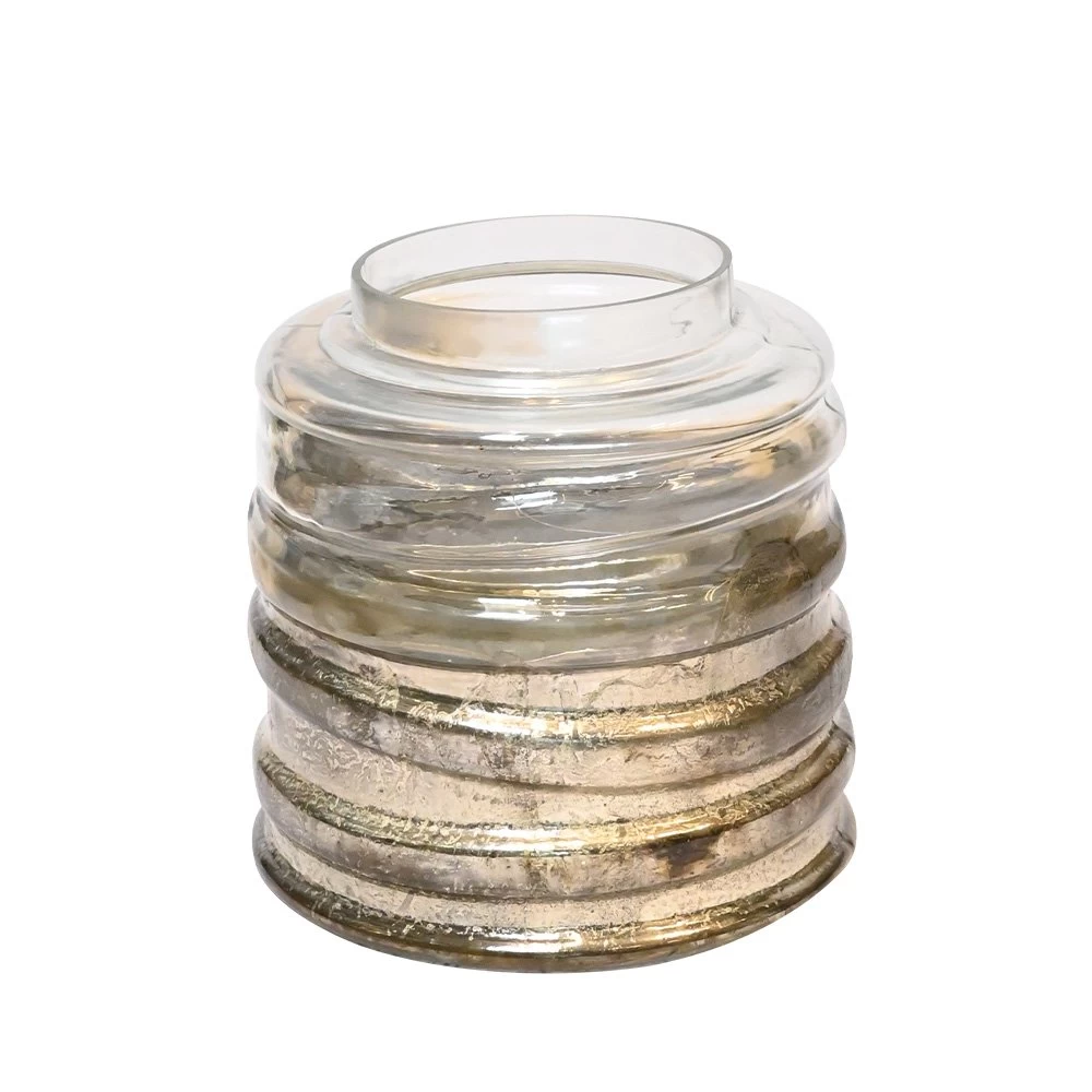 Glas met zilveren of bruine finish. Dia 23cm. Hoogte 23cm.